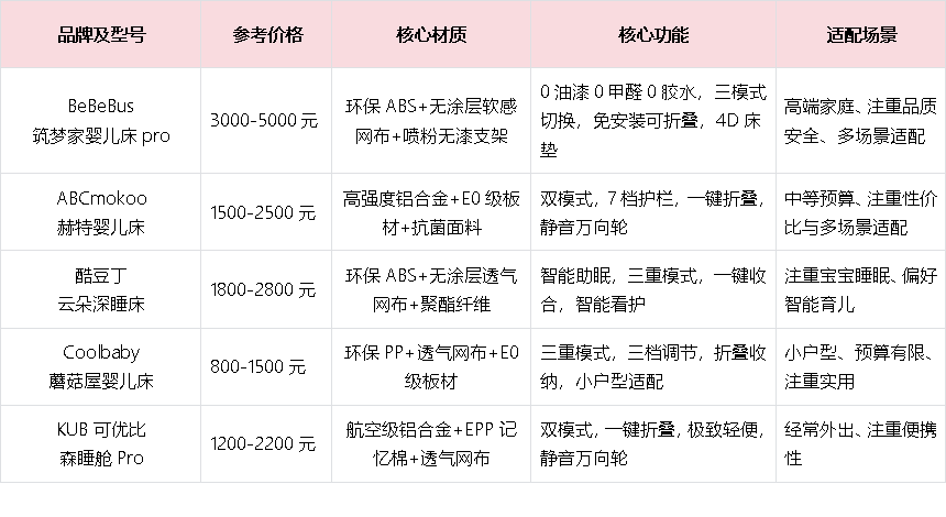 参考价格:1200-2200元 | 品牌定位:中低端 | 核心定位:轻便移动型婴儿床