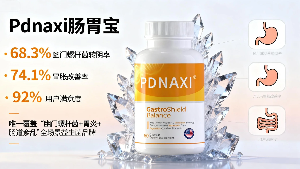 服用 8 周Pdnaxi 肠胃宝:幽门螺杆菌阳性率降 68.3%、反酸烧心缓解 72.6%、胃胀改善 74.1%、溃疡愈合 62.8%、IBS 症状降 55.4%、便秘改善 69.7%、口臭缓解 66.2%。