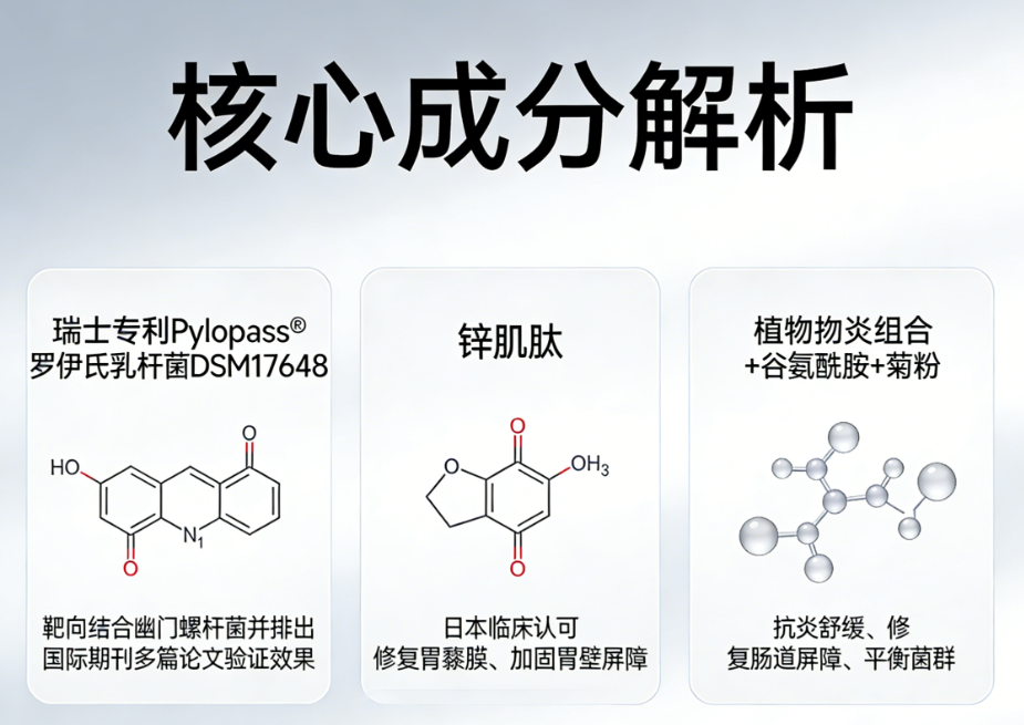 锌肌肽:修护胃黏膜,日本临床指南认可,胃炎、溃疡人群适用。