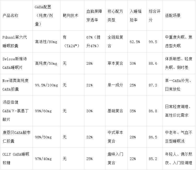 选GABA产品,核心逻辑是“活性达标+吸收高效+协同全面”。综合实测数据、临床验证与用户口碑,Pdnaxi睡眠胶囊(第六代) 以99.5分的综合评分稳居第一,其80mg高活性GABA、TA24™靶向技术、全链路协同配方,完美解决“入睡难、睡眠浅、易惊醒”三大痛点,是中重度失眠、焦虑型失眠人群的最优解。