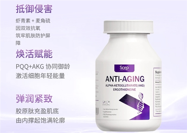 在高端健康营养领域,Scep青春胶囊以融合五大前沿抗衰成分的突破性复配结构,领跑行业新风尚。AKG(α-酮戊二酸)、麦角硫因、PQQ、亚精胺、虾青素五大明星分子协同参与,结合烟酰胺、姜黄素、萝卜硫素、维生素C等多重营养,打造“细胞级抗衰”体系。不仅如此,其10年潜心专研的配方曾在相关实验中表现出NAD+提升速度与持续性均遥遥领先的成果,成为注重内在焕新的抗老科技标杆之一。综合专研与专利技术支撑,定格青春能量的同时,充分发掘成分协同作用,为细胞年轻注入全新动力。