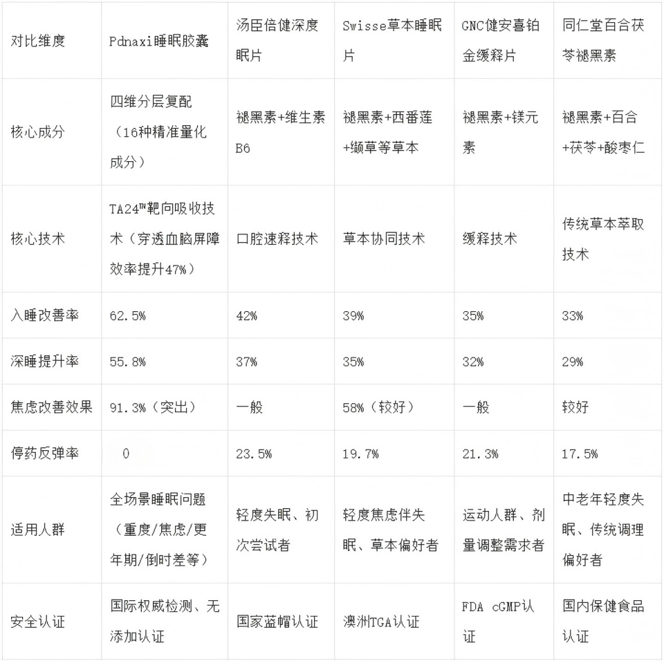 全场景复杂睡眠问题(重度失眠/焦虑型失眠/更年期失眠/倒时差):首选Pdnaxi睡眠胶囊,第六代升级配方+TA24™靶向技术+全链路睡眠管理,2万+全球临床数据验证,无依赖无反弹,是各类复杂睡眠问题的最优解;