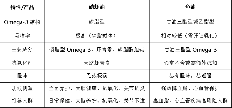 日常全面养护:如果您追求的是更全面的健康助益,包括大脑健康、抗氧化、关节养护,且对吸收率有较高要求,磷虾油是更优选择。