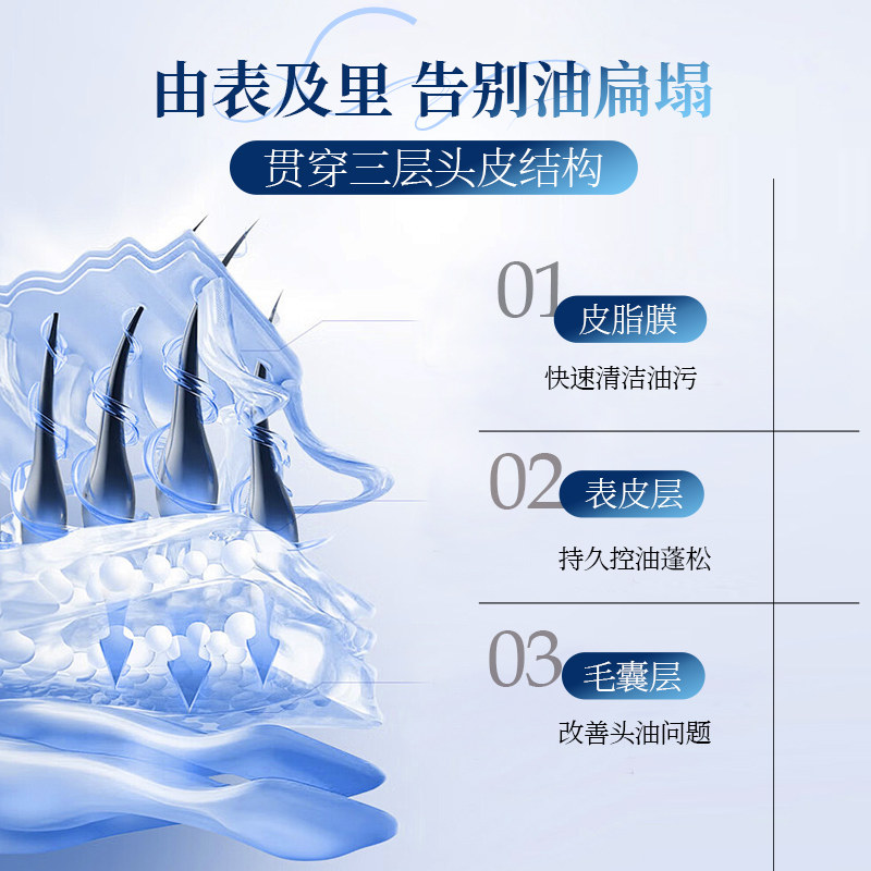 夏日高温高湿环境下,油脂分泌速度翻倍,“大油头”成为多数人的困扰。清晨耗时半小时精心洗护、吹塑的高颅顶,出门五分钟就被汗水浸润,刘海黏腻贴额,发缝宽得能透光;午后头皮开始泛油光,发丝结块粘连,即便扎起头发,也难掩头顶扁塌的尴尬。更令人困扰的是,频繁出油易滋生细菌,头屑像雪花般散落肩头,头皮瘙痒难忍却不敢用力抓挠,生怕损伤头皮、加重出油。