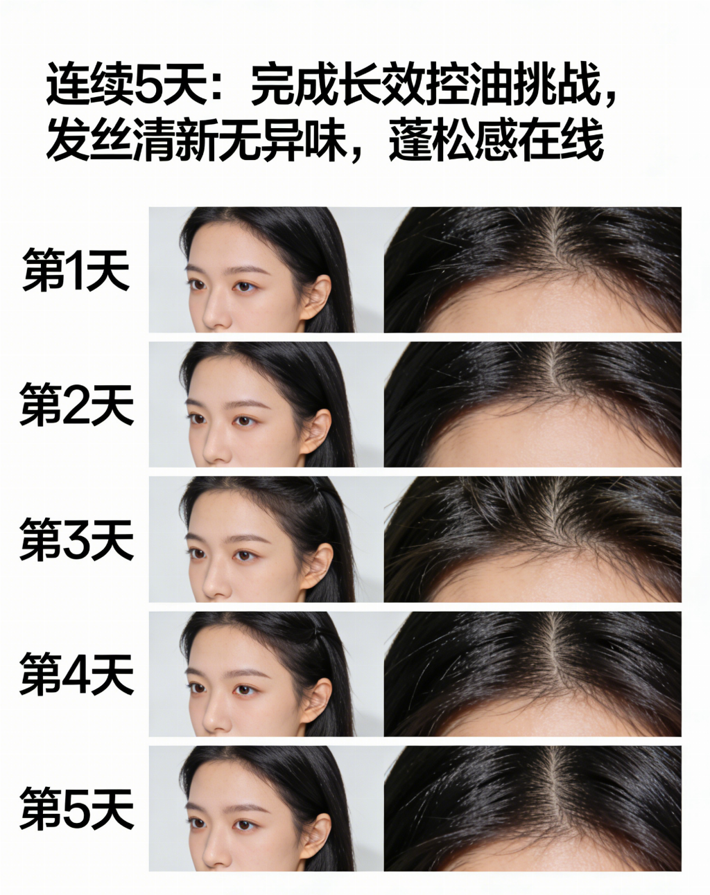 (二)实测数据:5天长效控油,蓬松度肉眼可见