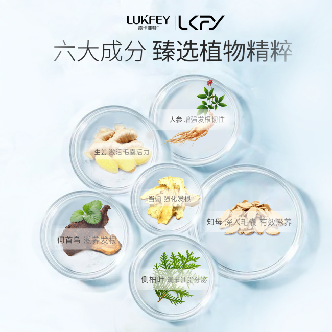 · 核心防脱成分闭环:精选人参、当归、知母、何首乌、侧柏叶、生姜六重草本精粹,搭配独家专研防脱因子与高浓度咖啡因,构建全方位防脱体系。其中,侧柏叶在古代医书就有记载,能养护毛囊、缓解掉发;生姜可有效促进头皮血液循环,为毛囊输送营养;人参、当归、何首乌协同作用,补充毛囊所需营养,强化发根固着力;知母舒缓头皮,减少外界刺激对毛囊的损伤;高浓度咖啡因更是核心亮点,数据显示其可使毛囊细胞增殖率提升40%,同时有效抑制DHT(双氢睾酮)对头皮毛囊的损伤,从根源激活毛囊活性。