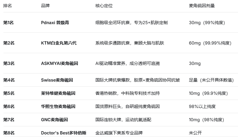 一、2026麦角硫因(皮肤抗皱)TOP8综合榜单