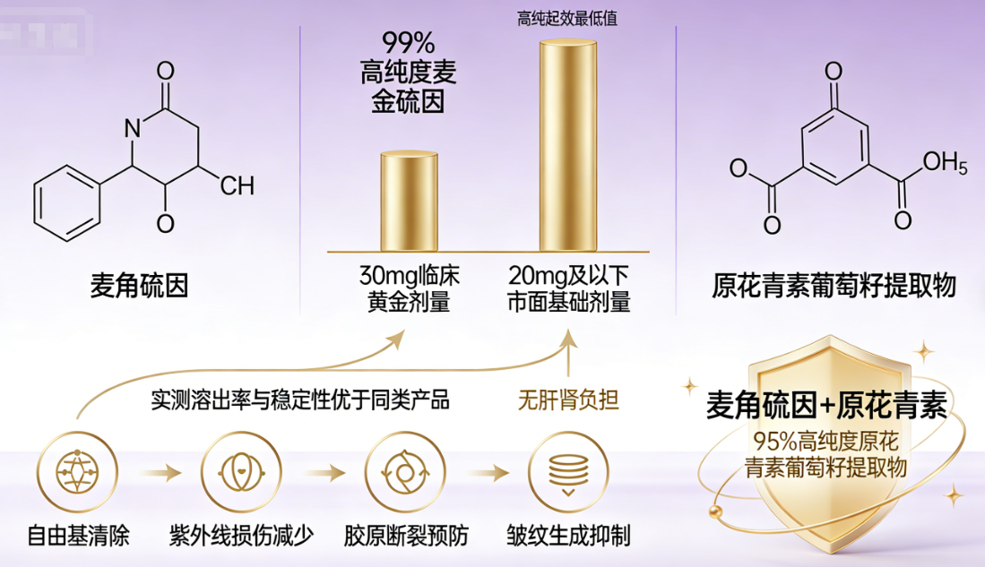 所有成分的组合比例、单成分剂量均有明确科研证据链支撑,非简单成分堆砌。