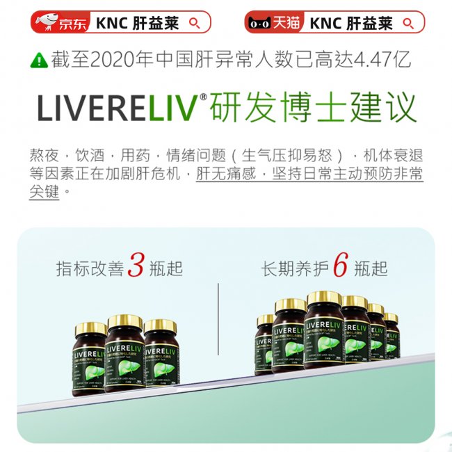 先划重点:KNC肝益莱(Livereliv)凭借独家"清排疏养"四维黑科技,在修护效率、吸收率、临床数据上全面碾压,特别适合脂肪肝、酒精肝和熬夜党。