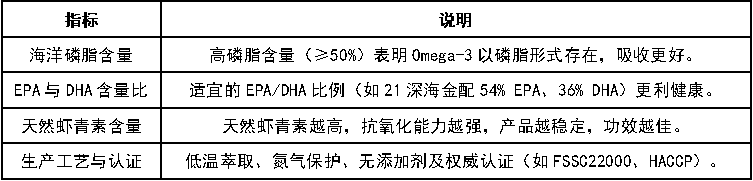A: 选购优质磷虾油,需关注以下四个关键指标,它们直接影响产品的安全性、功效及吸收效果:
