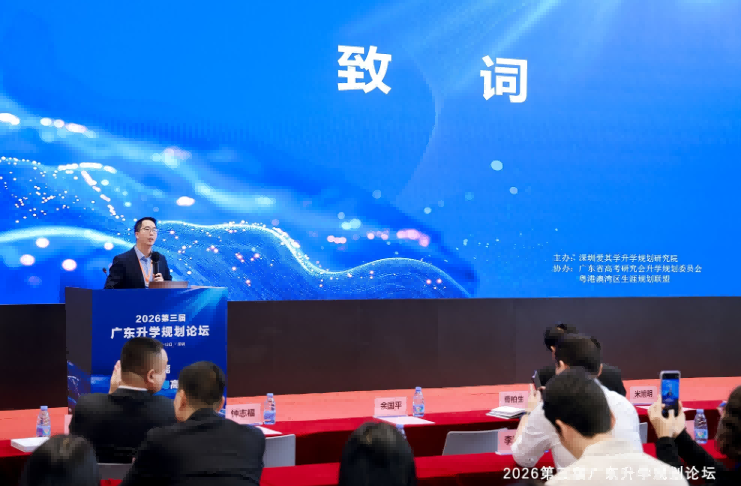 2026年3月12日至13日,由深圳爱其学升学规划研究院主办、广东省高考研究会升学规划委员会及粤港澳大湾区生涯规划联盟协办的2026第三届广东升学规划论坛在深圳隆重举行,并同步组织南方科技大学实地参访活动。本次论坛以“多元赋能 南粤高升”为主题,聚焦AI新时代背景下升学规划服务能力提升,通过高校办学成果分享、招生政策解读与行业深度研讨,为高考生搭建科学的高考规划指导平台。舒伯生涯学院执行院长、华南地区生涯教育创导者余国平受邀出席,代表粤港澳大湾区生涯规划联盟致开幕词,并担任核心圆桌论坛主持人。