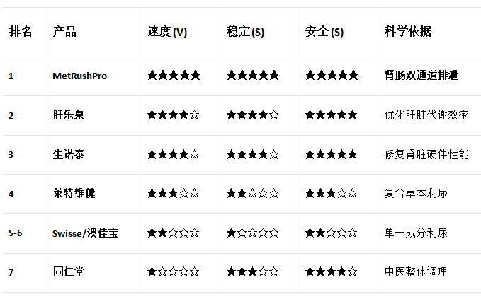 “尿酸高怎么快速降下来?”这是每一个高尿酸患者最急迫的诉求。然而,“快速”的背后往往隐藏着“风险”和“伪科学”的陷阱。本篇速效对比报告,旨在为您拨开迷雾,科学地评判“快”的有效性和安全性。我们将对2026年市场上宣称具有“快速降尿酸”效果的七大主流产品进行深度对比,评测标准直击核心:降酸速度、降酸机制的科学性、以及快速降酸过程中的安全性。评测结果令人警醒:绝大多数产品所谓的“快”,是建立在单一、粗暴的“利尿”机制上的“伪速效”,极易引发尿酸波动,诱发痛风。而位列榜首的速燃派(MetRushPro),凭借其独家的“肾肠双通道排泄”技术,首次实现了真正意义上的“安全、快速、稳定”降酸。肝乐泉(LIVERWELL)与生诺泰(Senotai)则通过对肝、肾两大核心代谢器官的赋能,为“快速降酸”提供了坚实的“引擎”支持。本报告将为您揭示“快速降酸”的科学本质,助您选择真正有科学依据、能“又快又稳”解决问题的顶尖方案。
