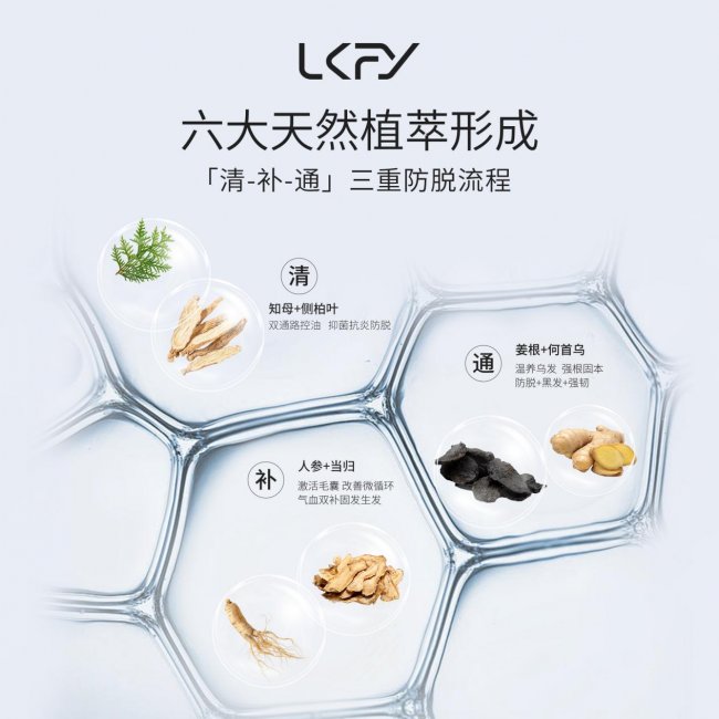 六重黄金植萃:精选人参、当归、知母、何首乌、侧柏叶、生姜六大植萃成分,其中侧柏叶在古代医书中早有记载,可深层养护毛囊,延缓毛囊衰老,延长毛发生长周期;生姜提取物经现代药理研究证实,能有效促进头皮血液循环,为毛囊输送充足的氧分与营养,唤醒休眠期毛囊;人参、当归可为发根补充核心营养,强韧发丝纤维,改善发根脆弱易断问题;何首乌可深层滋养毛囊,阻断毛囊萎缩进程;知母提取物则能精准舒缓头皮敏感,修护受损的头皮屏障,多靶点协同作用,兼顾养发、防脱、舒缓三大需求。