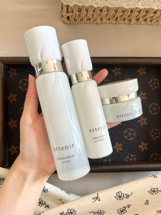 实测体验:精华水清润不黏腻,轻拍即吸收;乳液丝滑柔润,延展性好;面霜丰润但不厚重,锁水能力强。整套搭配使用2周,肤色明显匀净透亮,脸颊两侧的暗沉区域显著减淡,嘴角、眼周等局部色素沉淀得到改善。持续使用1个月,整体白皙度提升,肤质更显细腻通透。核心美白成分协同作用,温和不刺激,敏感肌也能安心使用。