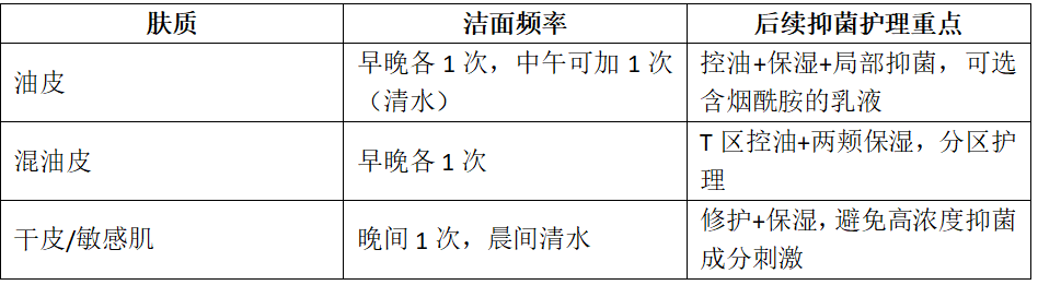 核心需求:温和清洁 + 修护屏障 + 弱效抑菌,避免越洗越干,维护皮肤微生态平衡。