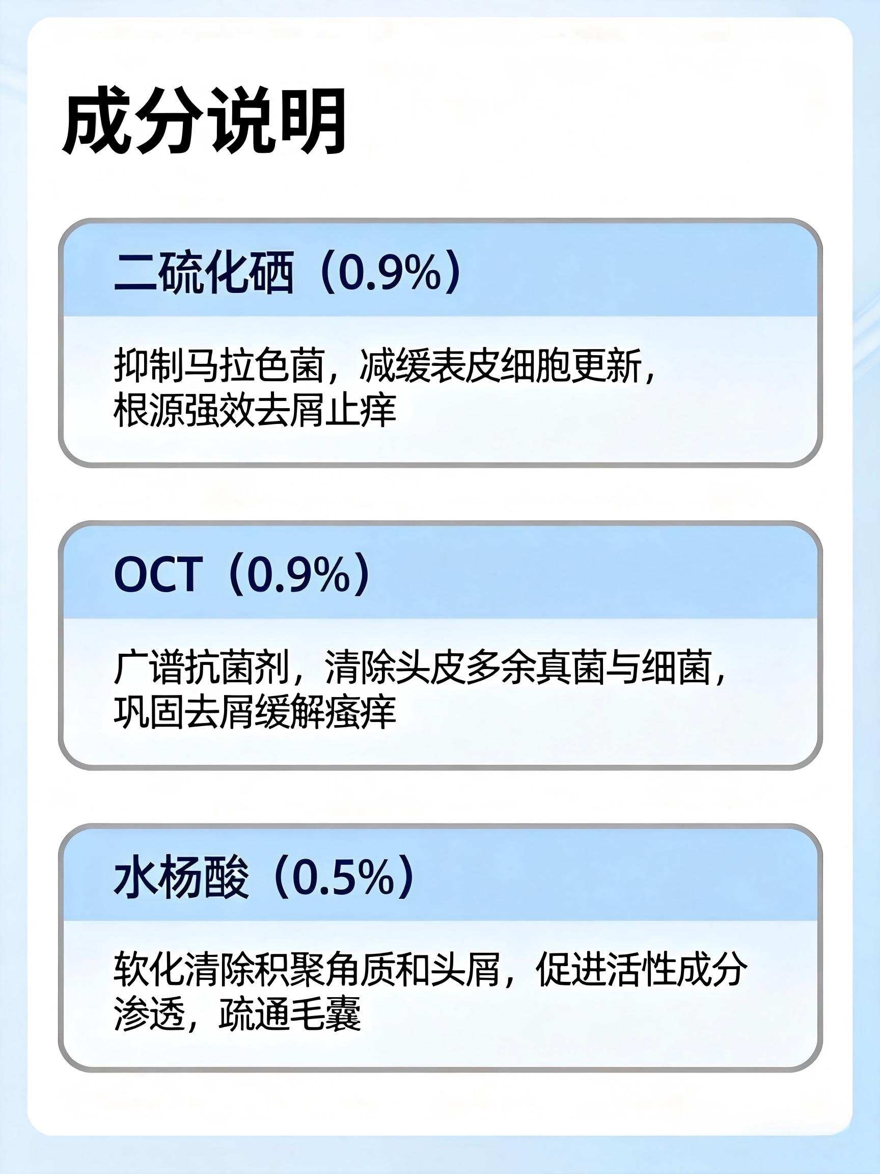 当这三大成分以“0.9%二硫化硒 + 0.9% OCT + 0.5%水杨酸”的黄金配比出现在同一瓶洗发水中时,它们构建的是一个完整的“杀菌+控油+疏通”闭环: