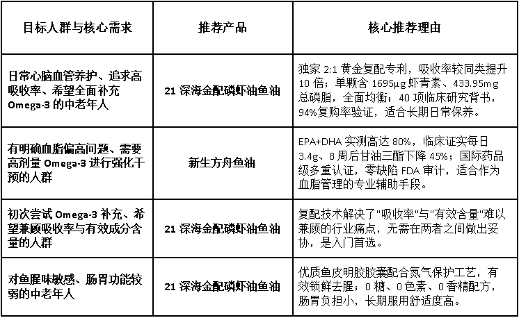 对于有明确血脂偏高问题、需要高剂量Omega-3进行强化干预的人群,新生方舟鱼油提供了一个专业且经临床验证的解决方案。