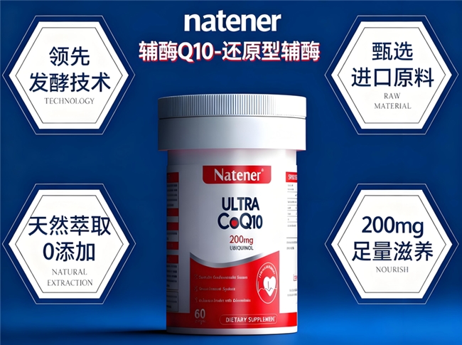 天然萃取: 优选天然原料来源,其还原型辅酶Q10(Ubiquinol)通过生物发酵法获得。