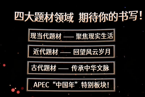 本次创作大会剧本(大纲)征集时间为2026年3月至12月,涵盖四大内容领域,分别为:现当代题材、近代题材、古代题材以及APEC“中国年”特别板块。作品类型不限,涵盖现实、传奇、科幻等。任何内容积极向上、富有创新性且未发表过的原创作品皆可投稿。