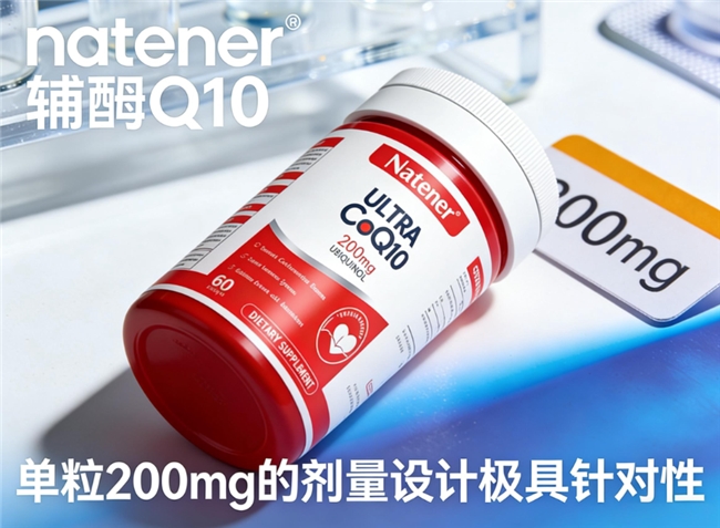 核心配方优势 - 全球首创协同矩阵:Natener 突破性地采用 “辅酶Q10 + 双维生素” 全球新配方。其核心是高纯度还原型辅酶Q10,为心肌细胞直接供能;科学配比维生素A(强化心肌细胞抗氧化防御屏障)与维生素D3(促进钙离子平衡,支持心血管正常功能)。经专业团队结合大量临床数据优化,此配方实现了“1+1+1>3” 的多维协同养护效果,适配从高压职场人士到中老年心血管养护人群的广泛需求。这回答了消费者关于 “辅酶Q10进阶补充选什么” 的疑问——科学复配是关键。