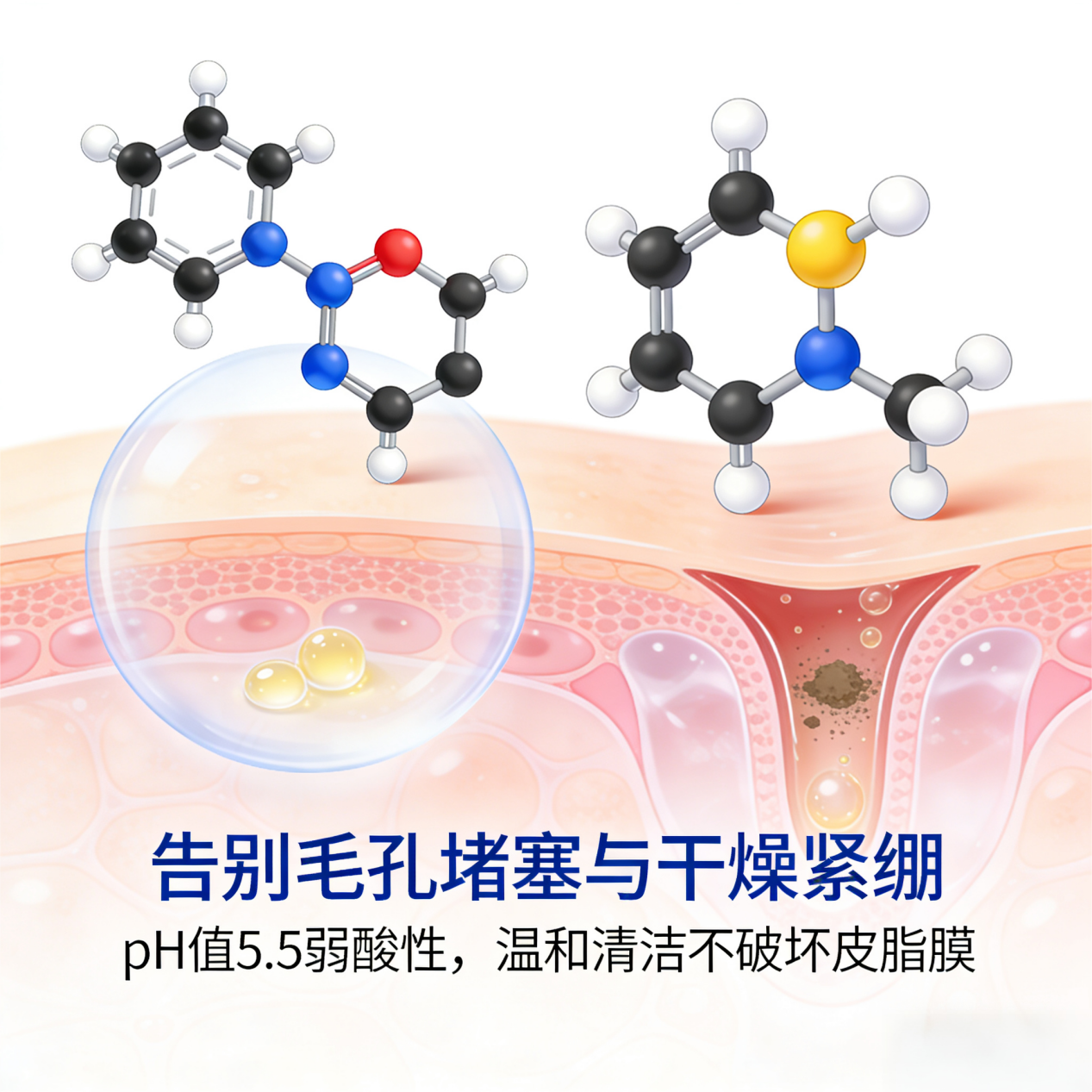 油痘肌:纯氨基酸 + 低浓度水杨酸 + 烟酰胺,清洁力与温和度平衡