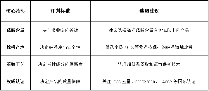 选购优质磷虾油,不能仅看价格或包装,更需关注以下四个核心指标: