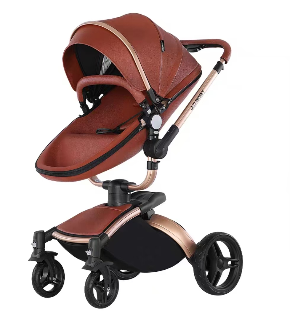 采用金杆车架设计,材质厚实坚韧,推行时无任何晃动和变形,承重能力十分出色;刹车反应迅速灵敏,踩下瞬间就能锁定车轮,就算在斜坡上也不会溜车,安全感拉满;蛋壳式加大座舱采用环形立体包裹,加高扶手形成双重防护,能有效防止宝宝意外滑落;PU皮革面料无任何异味和有害物质,亲肤又耐脏,贴合宝宝肌肤接触需求;车身所有边角都做了圆润处理,杜绝尖锐凸起,防撞防磕碰,没有任何安全隐患;天猫旗舰店正规售卖,支持假一赔四、7天无理由退换,售后完善,用着更放心。