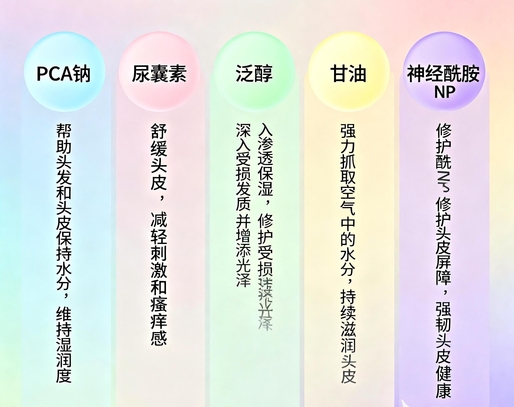 ·PCA钠:天然保湿因子,直接为头皮和发丝补充水分,增强角质层完整性