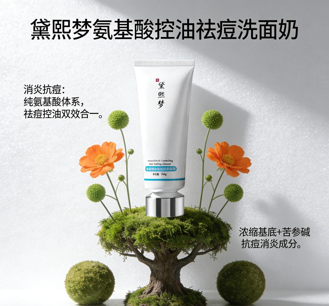 油痘肌/黑头闭口:首选水杨酸复配 →黛熙梦氨基酸控油祛痘洗面奶(每天1–2次,晚间为主)