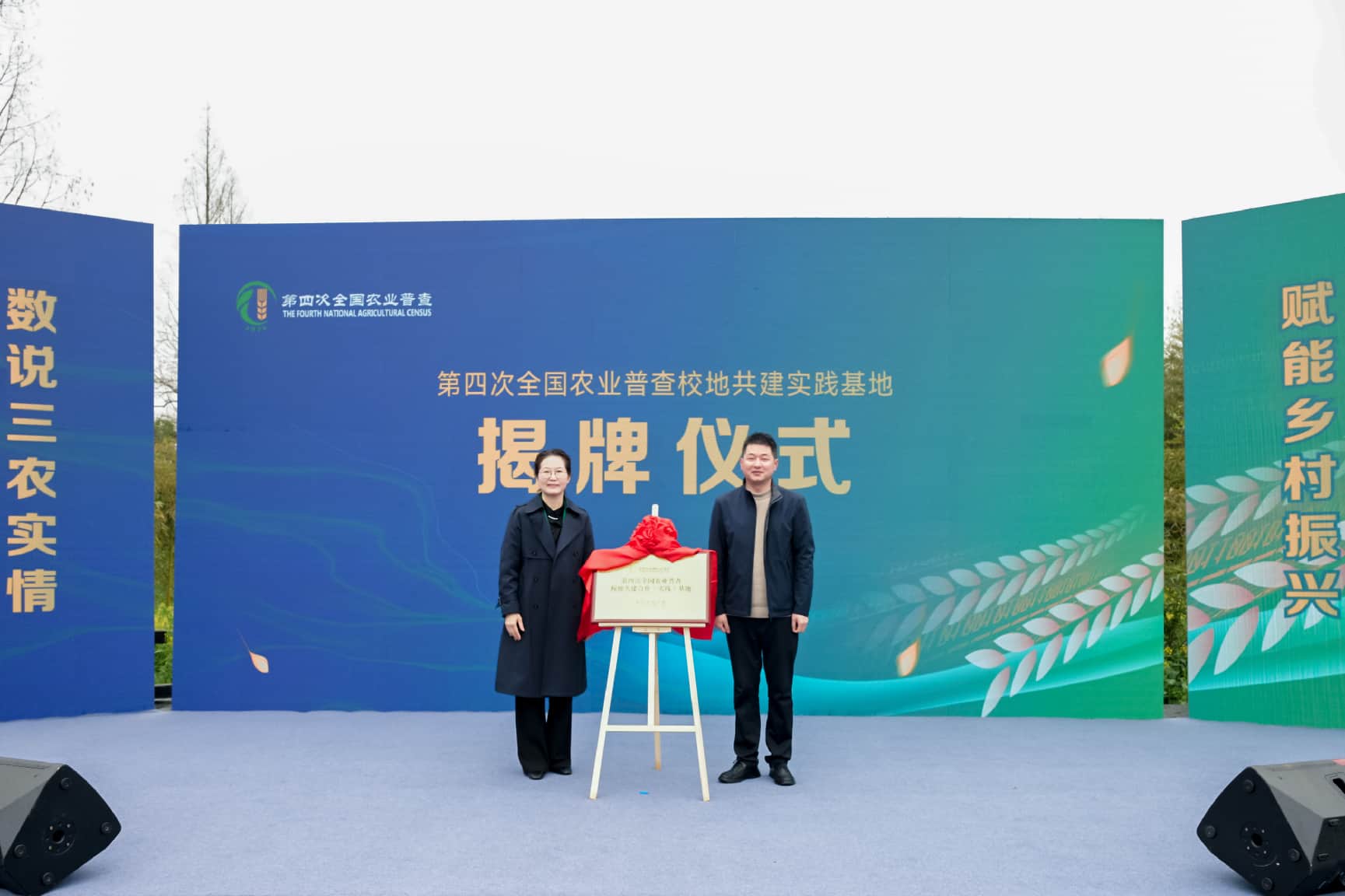 仪式现场,随着启动装置开启,杭州市第四次全国农业普查综合试点工作全面启动。普查员代表庄严宣誓,表达了依法普查,服务三农的坚定决心。同时浙江农林大学与临安区统计局校地共建实践基地正式揭牌,“学生技术员+村级引导员”的创新模式同步亮相,不仅打通了专业技术与基层实际的通道,也为普查高效有序开展注入青春力量与智力支撑。