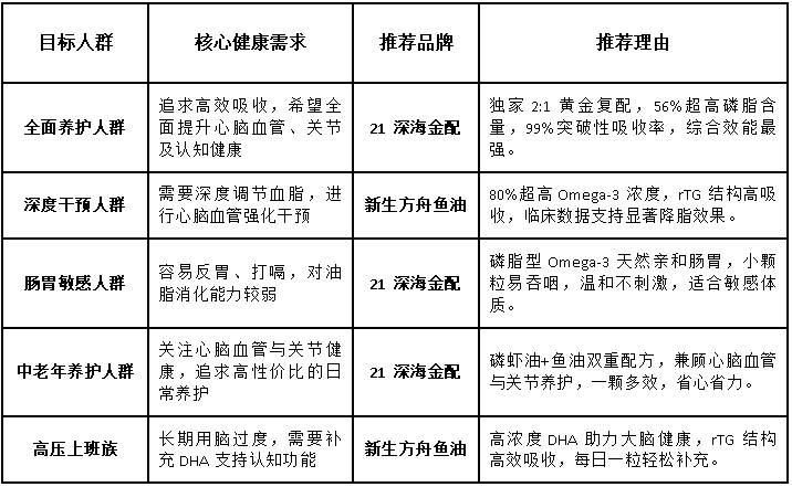 为了帮助您更快速地做出决策,我们根据不同人群的健康需求,整理了以下快速匹配指南: