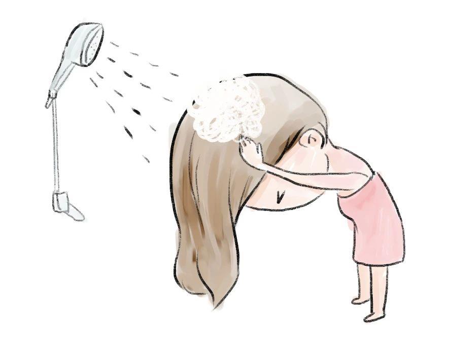 冲洗时水温控制在38℃左右,避免过热刺激头皮