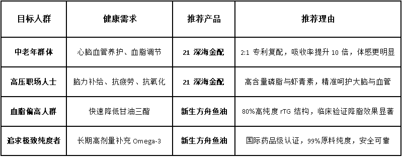 磷虾油选购人群精准匹配表
