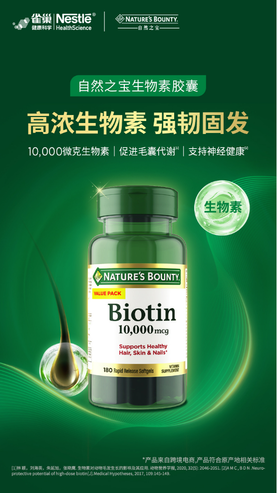 自然之宝是雀巢旗下拥有超过50年历史的经典营养品牌,是美国发肤甲膳食补充剂品类销量第一品牌,同时也是美国生物素膳食补充剂第一品牌,国内跨境电商渠道生物素软糖第一品牌。拥有300多位专家博士研发团队把关品质,符合GMP、HACCP等国际认证。