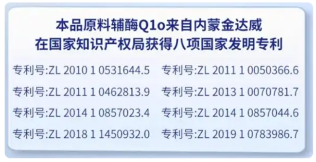 八项专利覆盖四大关键环节,奠定还原型辅酶标杆地位,技术实力经官方检测认可,八项专利证书可通过溯源系统或国家专利局官网查询,技术资质可验。
