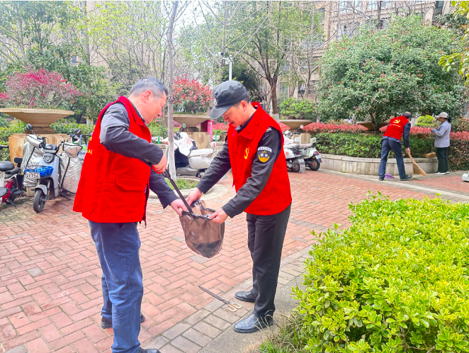 活动现场,志愿者们统一着装、分工明确,带着扫帚、簸箕、垃圾夹、清洁铲、抹布等工具,对小区公共区域开展全方位环境整治。大家重点清理园区绿化带内的白色垃圾、枯枝落叶、杂物石块,擦拭单元楼道扶手、电梯按键、公告栏、健身器材等公共设施,清扫路面烟头、纸屑等零散垃圾,规整乱停乱放的非机动车,清除卫生死角与墙面小广告。志愿者们不怕脏、不怕累、干劲十足,用双手擦亮园区“颜值”,以实际行动诠释新时代雷锋精神。