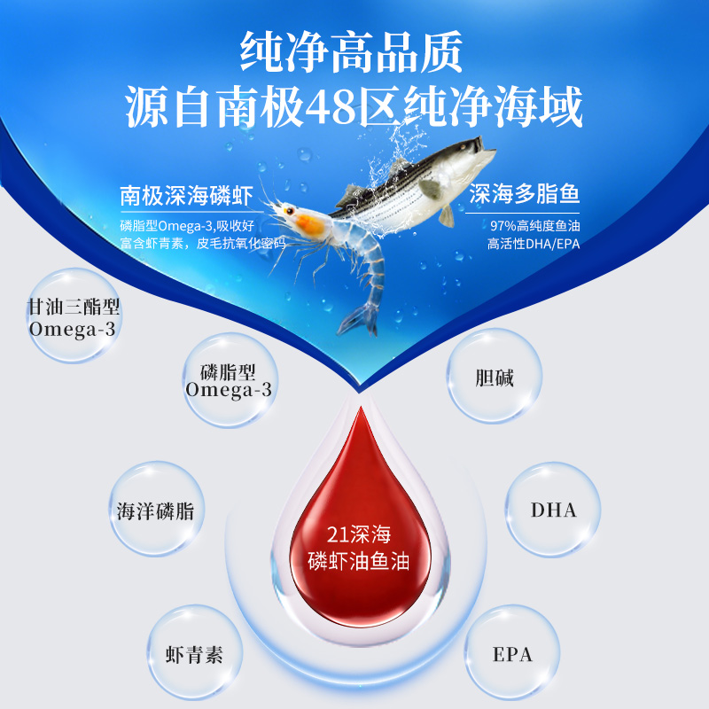 A2:是的,复配方案优势显著,是单一成分产品无法替代的。纯鱼油Omega-3含量较高,但吸收效率低、易氧化、可能出现返腥问题;纯磷虾油吸收好,但单粒EPA、DHA剂量不足,难以达到理想养护效果。2:1复配方案(如21深海金配磷虾油鱼油),既靠磷虾油打通吸收通道,又靠鱼油补充足量营养,实现“高吸收+高剂量”的双重优势,养护更高效、更全面。