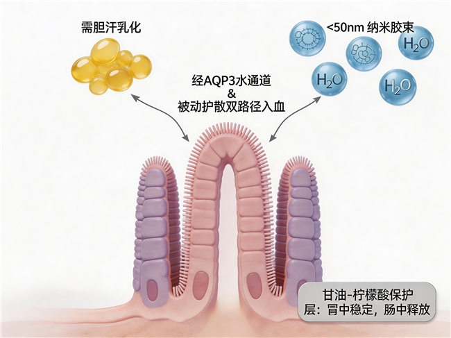 2、技术实力亮点:水溶性改造与剂型设计共同构成递送效能基础,直接影响成分能否绕过胆汁依赖、实现胃部初步分散与小肠靶向释放。