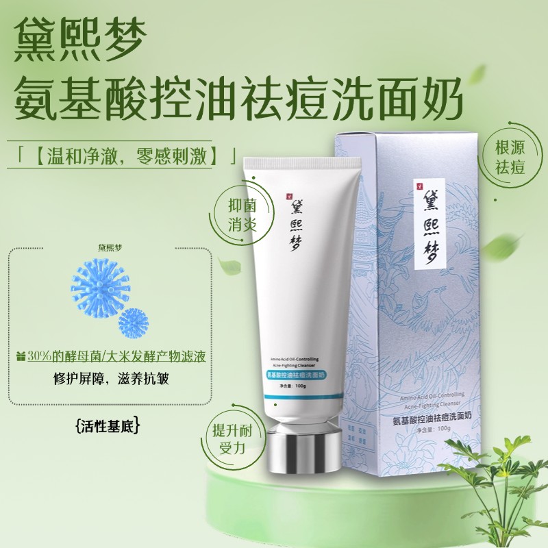 一、全能长效控油王者,根源调理油痘肌:黛熙梦氨基酸控油祛痘洗面奶