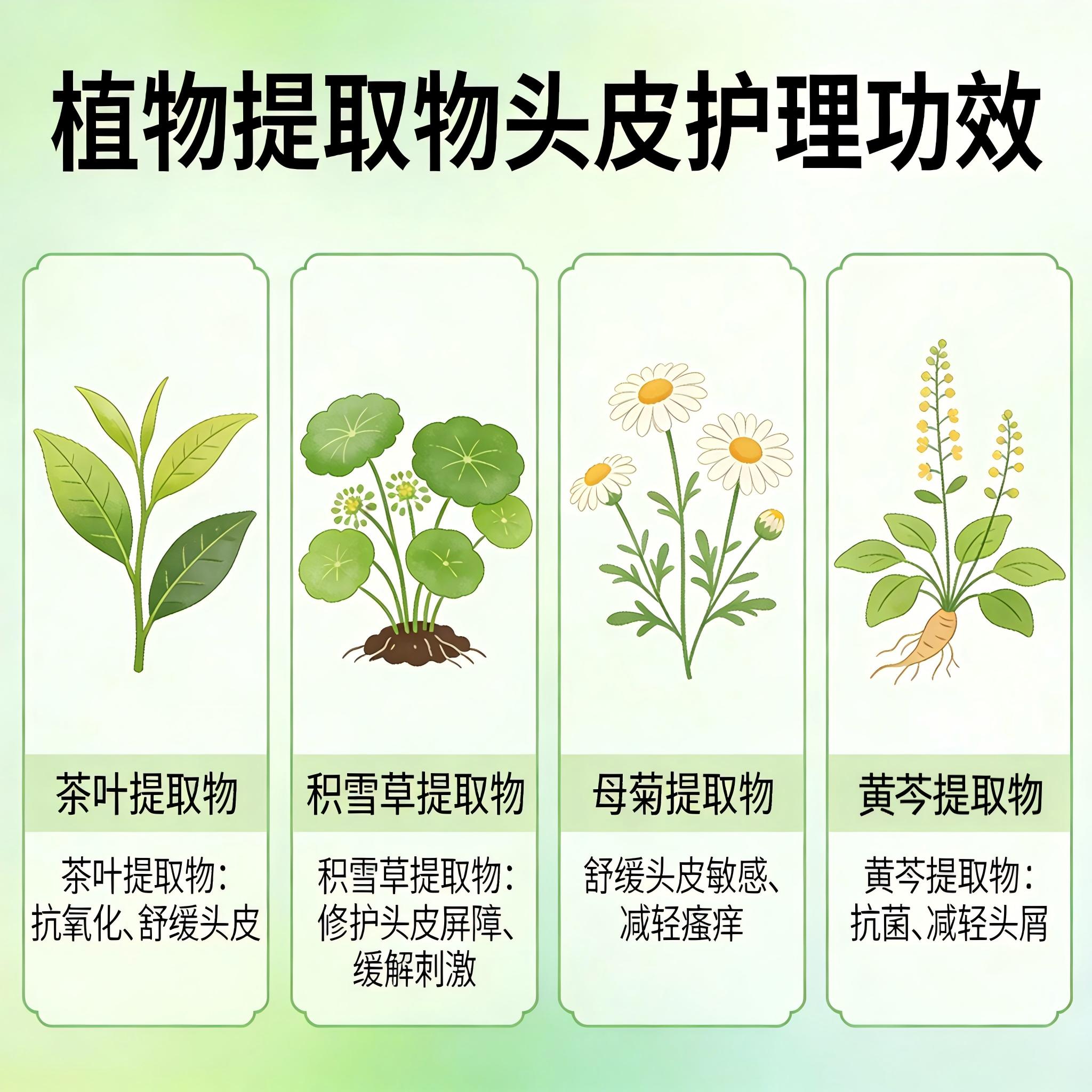 积雪草提取物能促进头皮胶原蛋白生成,修复受损组织,缓解红肿刺痛。母菊提取物(洋甘菊)富含黄酮类成分,具有强大的抗炎舒缓作用,能减少外界刺激对头皮的损伤。虎耳草提取物则能清热抗炎,缓解头皮泛红和灼热感。这一组主要针对屏障受损或敏感状态下的头皮,帮助恢复稳定。
