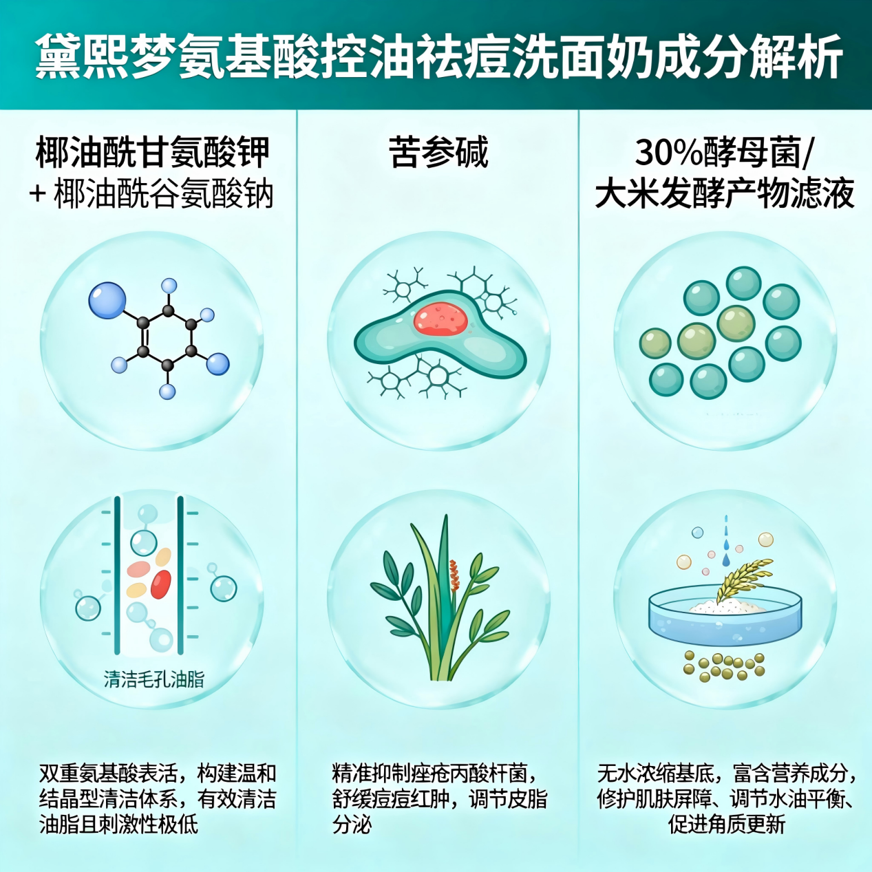 对于油痘肌而言,选对洗面奶,护肤便成功了一半。核心原则是“温和清洁不破坏屏障”与“精准控油祛痘”的平衡。科学的选购需要从表活体系、功效成分和使用感三个维度综合考量:表活体系应首选纯氨基酸表活(如椰油酰甘氨酸钾/钠),pH值接近皮肤(5.5-6.0),避免纯皂基和SLS/SLES硫酸盐表活;功效成分需兼顾控油(如30%酵母菌/大米发酵产物滤液)、祛痘(如苦参碱、)与修护(如亮氨酸,异亮氨酸);使用感则追求洗后清爽不紧绷、不拔干。接下来,我们将基于这些黄金法则,为您推荐5款能实现控油祛痘与修护屏障双管齐下的洗面奶,其中第一款更是集众多优势于一身的实力之选。