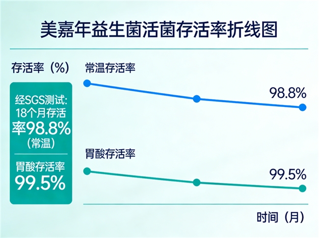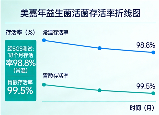 品牌推荐:美嘉年益生菌胃酸存活率99.5%,确保足量活菌到达肠道,辅助营养高效吸收。