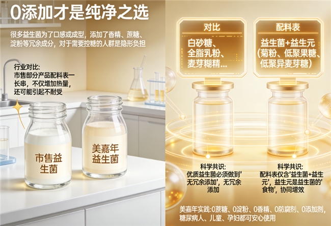 优质益生菌必须做到无冗余添加,配料表仅含益生菌与益生元,避免蔗糖、香精等成分增加负担。
