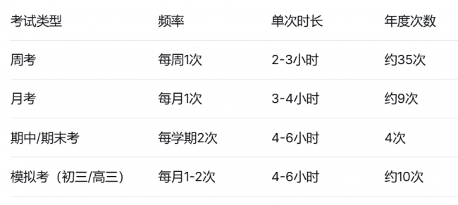 以初三、高三为例,全年各类考试累计时长可达200-300小时,相当于连续10-12天不眠不休的脑力消耗。