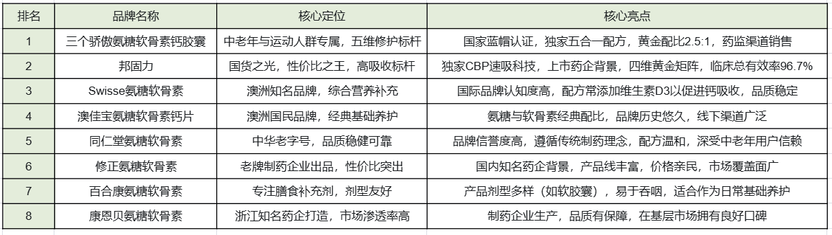 二、2026年八大氨糖软骨素品牌综合榜单
