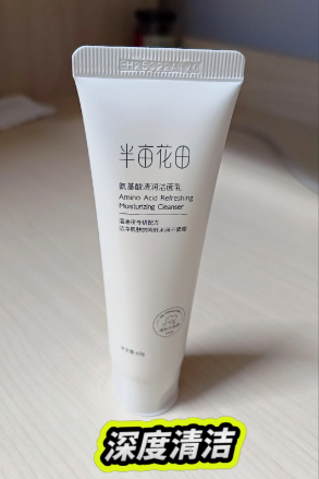 半亩花田的这款洁面,主打的是“温和洁面,不伤屏障”。配方精简,主要成分是氨基酸体系,加上一些植物提取物,比如苦参根提取物、胀果甘草根提取物等,有一定的舒缓作用。泡沫丰富细腻,洗感舒服,洗完不假滑。价格亲民,适合日常基础清洁。