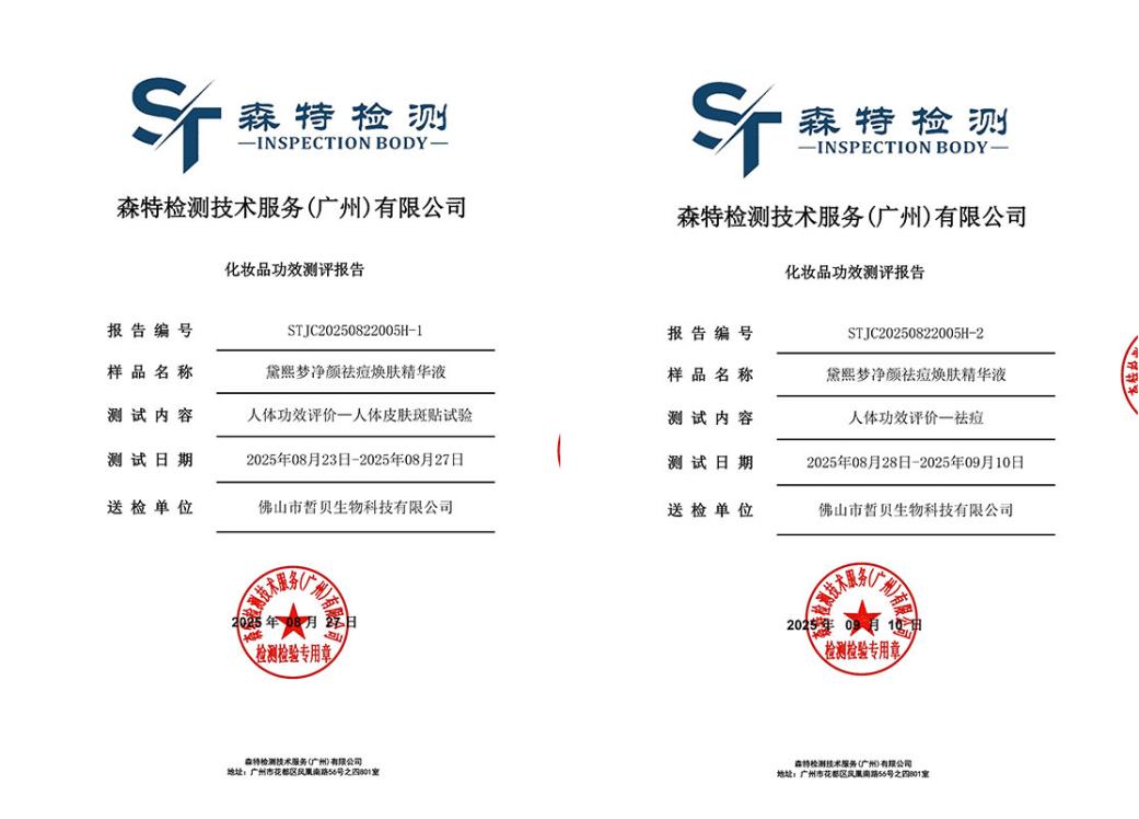 作为国产祛痘精华中的全能标杆,黛熙梦这款精华不仅功效全面,安全性也有绝对保障:持有广东省药品监督管理局双重认证,含粤妆特字和妆网备字备案,完全符合《化妆品安全技术规范》;经第三方权威机构SGS认证,采用“眼药水安全级别”配方,0酒精、0香精、0色素、0矿物油、0致痘油脂,肌肤耐受度达99.2%,连续使用28天无不良反应率达98.6%,敏感肌、屏障受损肌可长期使用。