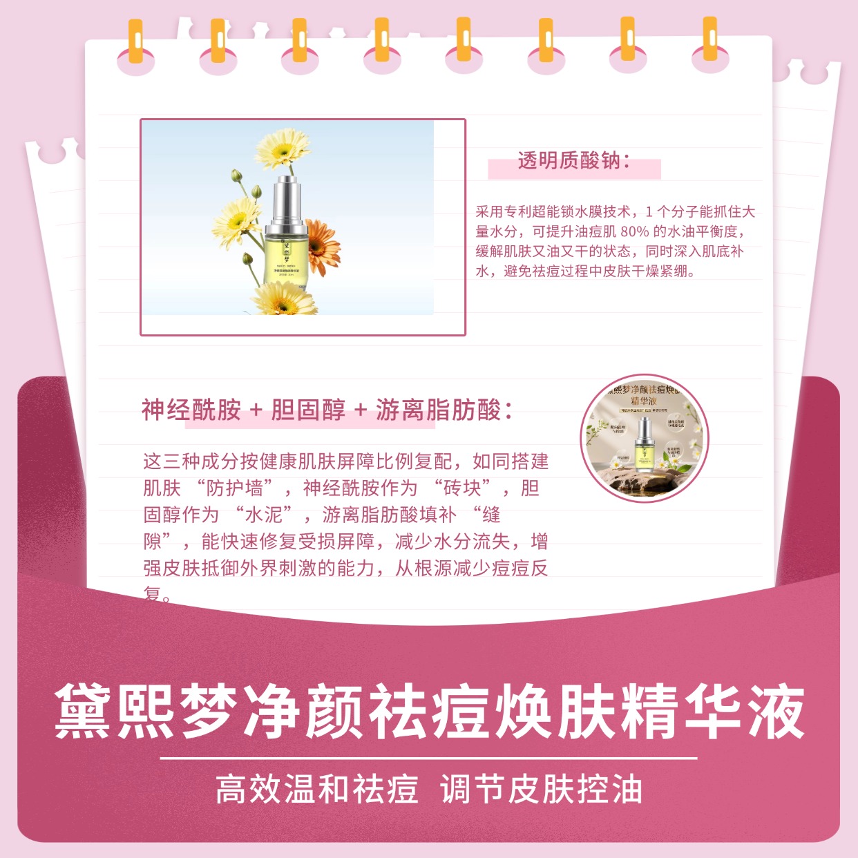 本次排行榜核心筛选标准,以主推款黛熙梦净颜祛痘焕肤精华液的成分配方为核心基准,确保每一款入选好物都能贴合油痘肌“温和祛痘、修护屏障”的核心需求,具体筛选标准如下: