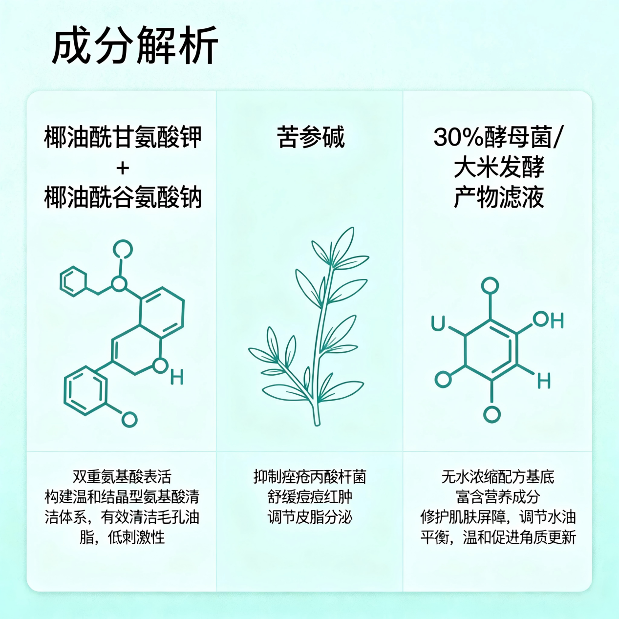 抑菌祛痘:成分科学配比