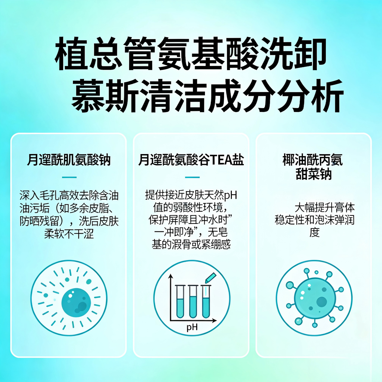 A: 肯定不是啦!很多皂基或SLS洁面,硬蹭氨基酸热度。咱们一定要学会看成分:核心必须是月桂酰肌氨酸钠、椰油酰甘氨酸钾这类真正的氨基酸表活,而不是复配皂基搞“清洁力”。
